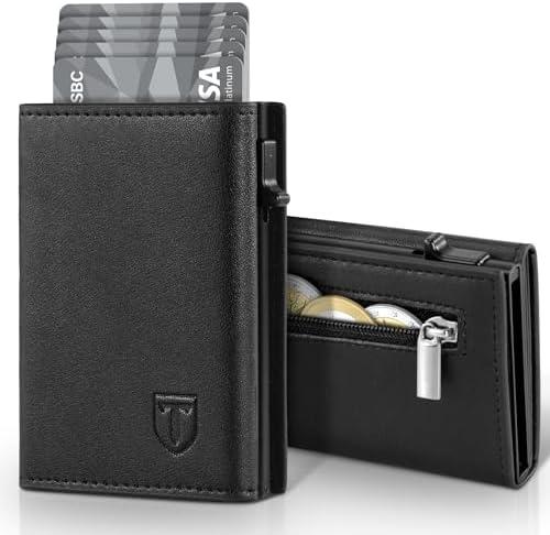 - 2 TENBST Portefeuille Homme en Cuir, Porte-Cartes avec Blocage RFID, 8 Porte Carte Crédit, Porte Carte Bancaire avec Compartiment à Billets et Poche à Monnaie – Boîte Cadeau
