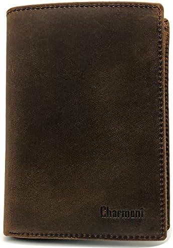 Charmoni Grand Classique Portefeuille en Cuir Protection RFID Blocage Homme (12VT Nubuck RFID Marron)