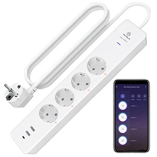- 1 ANTELA Multiprise Connectée WiFi 16A Prise Intelligente 4 Prises 2 USB/1 Type-C, Mesure de Consommation Électrique, Compatible avec Alexa/Google Home, Contrôle APP/Vocal, Fonction de Temps, 1,8M