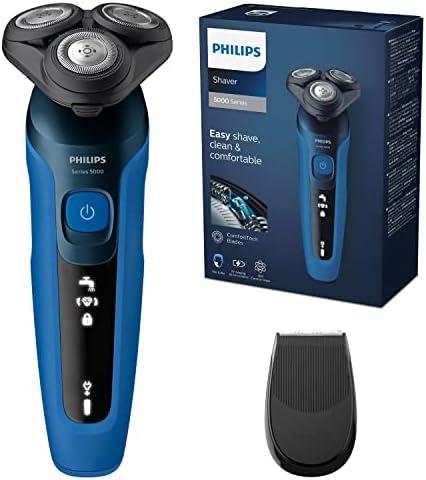 - 3 Rasoir Philips Series 5000, rasoir électrique 100 % étanche, lames ComfortTech à 360°, têtes de contour, affichage avancé, tondeuse de précision SmartClick, S5466/18