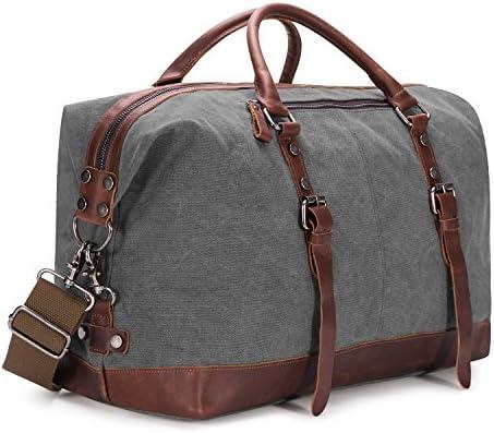 - 4 BAOSHA HB-14 ÉNORME élégant Sac de Voyage Week-End Sac de Sport en Toile et PU Cuir (Gris)