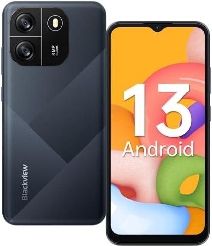 Blackview WAVE 6C Android 13 téléphones portables débloqués, Écran 6.5″ Smartphones Pas Cher 4G, 4Go+32Go/SD-1To, Batterie 5100mAh, Octa core, 8MP+5MP/Double SIM/Face ID/GPS/2Ans de Garantie-2024 Noir