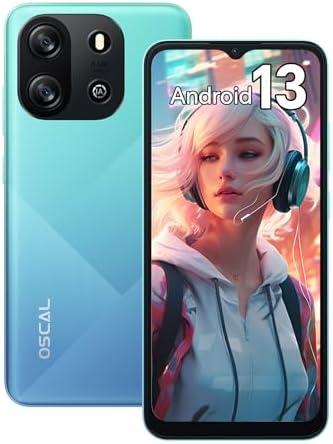 OSCAL Telephone Portable(2024), Flat1C Smartphone Pas Cher, 4GO RAM+256Go ROM Extensible, Téléphone Portable avec 6,5″ HD+ Écran, Caméras 8+5MP, Batterie 4700 mAh, Android 13,Face ID/OTG