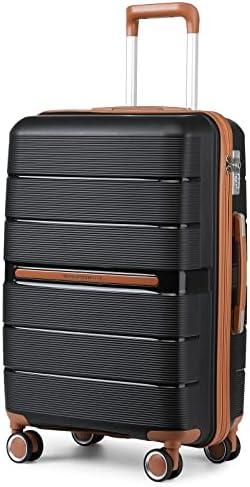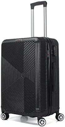 British Traveller Luggage Suitcase Rigid Polypropylene Luggage Suitcase Travel Suitcase with 4 Wheels and TSA Lock, Black, Suitcase