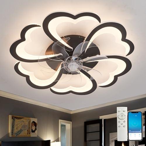 Flower Ceiling Fan with Remote Control, DC 6 Speeds Lamp Ceiling Fan, Dimmable, Silent Memory Function, for Living Room, Bedroom, App Black