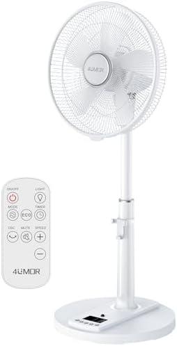 - 1 4UMOR 20dB Ultra Quiet Standing Fan with Remote Control 2772m³/h DC Brushless Motor 24W 4 Modes 9H Timer 9 Speeds Oscillation Height Adjustable for Home Bedroom Office
