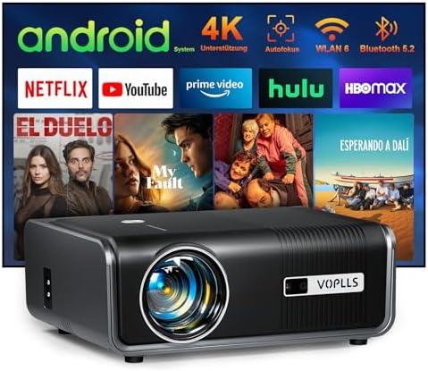 Vidéoprojecteur【Applications intégrées & Auto Focus/Keystone】 Projecteur Video 4K Supporté 23000L, VOPLLS WiFi 6 Bluetooth Full HD 1080P Retroprojecteur Zoom 50% Home Cinéma 300 » pour HDMI/USB/PS5