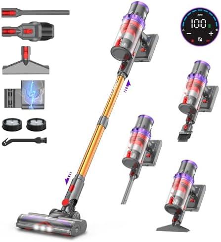 coovy SU7 Cordless Vacuum Cleaner 580W/55Kpa/75Mins, Powerful Cordless Vacuum Cleaner, Wall Charging, LED Touch Screens, 1.3L Capacity, for Hard Floors/Carpets/Pet Hair