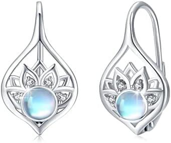Boucles d’oreilles Lotus en argent sterling 925 en forme de lotus pour femme – Boucles d’oreilles créoles en pierre de lune – Cadeau pour femme, Argent sterling