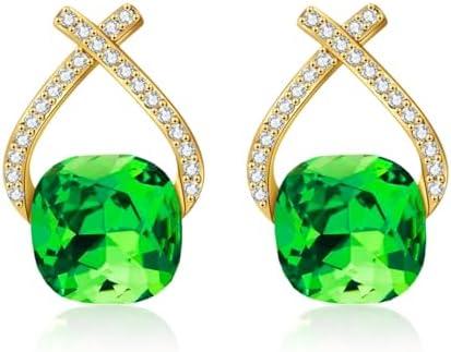 YONVUN Boucles d’oreilles en cristal autrichien | Plaqué 18K / Or Rose Zircon Pierre Précieuse pendants Ruby Saphir Émeraude Argent Bijoux Cadeau pour Femme Maman Fille Petite Amie