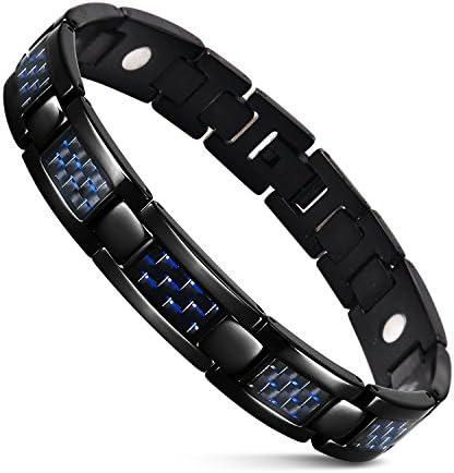 - 2 JFUME Bracelet magnétique pour homme en fibre de carbone avec acier inoxydable noir 22,1 cm avec outil pour enlever les maillons