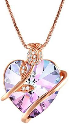 Angelady Collier Coeur-Améthyste pour Femme Collier Pendentif Coeur or Rose,Cadeau Femme Cadeau Maman La Saint-Valentin Cadeau de Bijoux Anniversaire Cadeaux romantiques pour Elle,Cadeau Femme