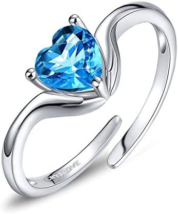 CRYSLOVE Bague Reglable Femme en Argent Sterling 925 Ajustable avec Pierre de Naissance étreignant Anneau Bijoux Bague de fiançailles Coeur Cadeaux d’anniversaire pour Maman Fille