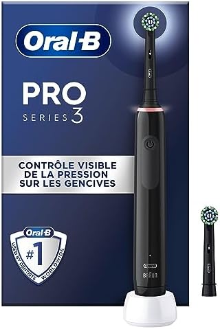 Oral-B Pro 3 3000 Brosse À Dents Électrique Avec 2 Brossettes, Technologie 3D, Élimine Jusqu’À 100 % De Plaque Dentaire, Noir (lot de 1)