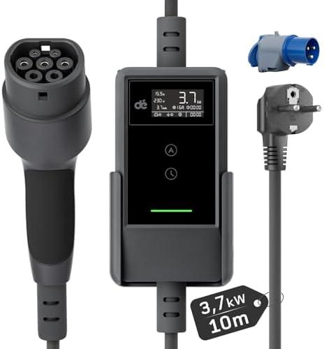 - 2 dé Electric Car Charger 3.7kW [10m, 6/8/10/13/16A] Type 2 Electric Car Charging Cable with Wall Mount, Digital LCD, Compatible with E-208, Model Y, E-Tech, 500e and Other EV/PHEV