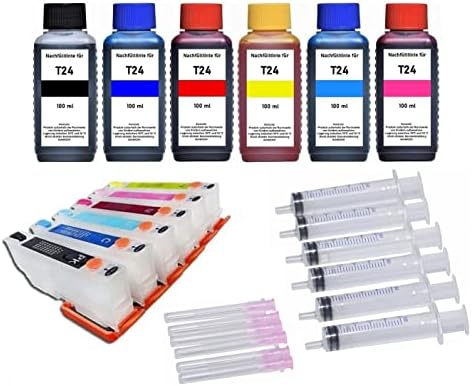 - 1 Cartouches rechargeables comme Epson T2431-2436 / T24 XL – 6 cartouches avec 6 x 100 ml Encre Ink Mate pour Epson Expression Photo XP-55, 750, 760, 850, 860, 950, 960