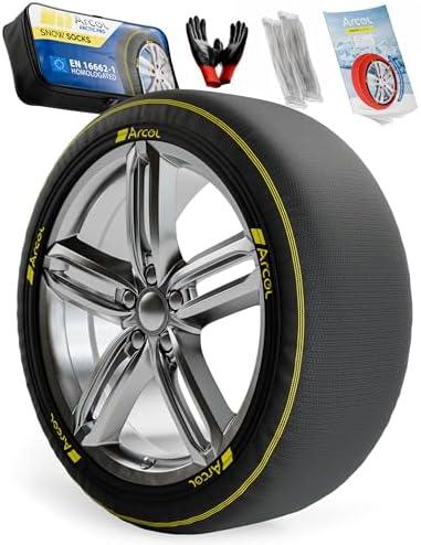 - 2 ARCOL Chaussettes Neige Textile Homologuées EN 16662-1 /// ArcticPro Chaînes Neige Tissu, Installation Facile, Conduite Silencieuse et Sécurité Maximale – Mesures Dét. à l’Intér. (ArcticPro, XL)