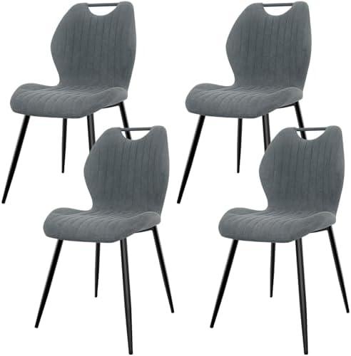 - 1 Set of 4 Dining Chairs, Kitchen Chairs, Upholstered Chairs, Living Room Chairs, Fabric Backrest and Metal Legs, Ideal for Dining Room, Kitchen, Living Room, Grey