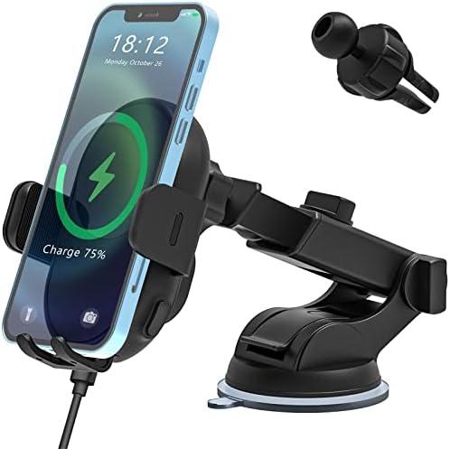 Auckly 15W Support Telephone Voiture Induction, [Serrage Automatique 270°], Rapide Chargeur Induction Voiture, Grille d’aération, pour iPhone 11 12 13 14 15 16 Série & Samsung S24 S23 S22 etc. Noir
