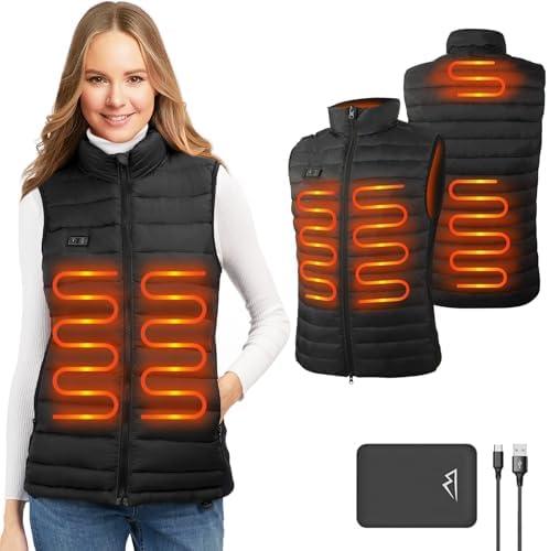seenlast Gilet Chauffant Femme, Veste Chauffante Femme avec Batterie Incluse, Doudoune Chauffante Femme avec Électrique 4 Zones de Chaleur 3 Températures Manteau Chauffant pour Hiver Moto Chasse