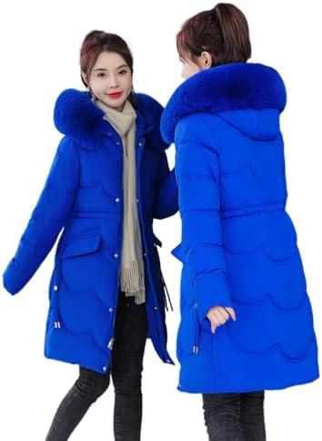 Minetom Doudoune Femme avec Longue Fausse Fourrure À Capuche Et Manches Manteau Automne Et Hiver Parka Coton Blouson