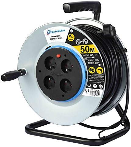 Enfin, dernier mais non des moindres, découvrez l’Electraline 208690 Rallonge Prolongateur électrique en Metal 50M. Outre son design métallique ultra robuste, cette rallonge vous offre 50 mètres de câble (oui, vous avez bien lu, 50 mètres !) pour travailler en toute sérénité. Equipé de 4 prises et d’un guide pour le câble, ainsi que d’une platine fixe et d’une poignée ergonomique, cet enrouleur vous procurera une expérience utilisateur inégalée.