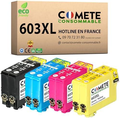 COMETE – 603XL – Lot de 8 Cartouches d’encre Compatibles Epson 603 XL - Cartouches Noir 603 + Cartouches Cyan/Magenta/Jaune (2 Noirs 2 Cyan 2 Magenta 2 Jaunes)
