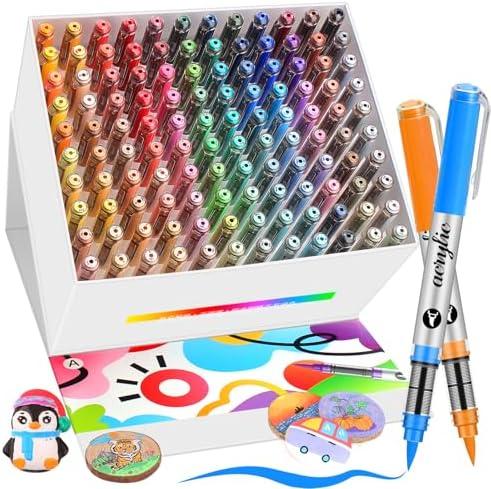 - 2 120 Pcs Feutre Acrylique , Marqueur Peinture Acrylique à Pointe Pinceau, Acrylic Paint Marker pour Peinture sur Bois, Pierre, Céramique, Tissu, Feutres Acrylique & Marqueurs pour Coloriage Adulte