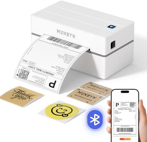 MUNBYN Imprimante d’étiquettes d’expédition Bluetooth, imprimante Thermique sans Fil 4×6 pour Colis et Petites Entreprises à Domicile, Compatible avec iPhone, Android, Mac, Windows, Colissimo et UPS