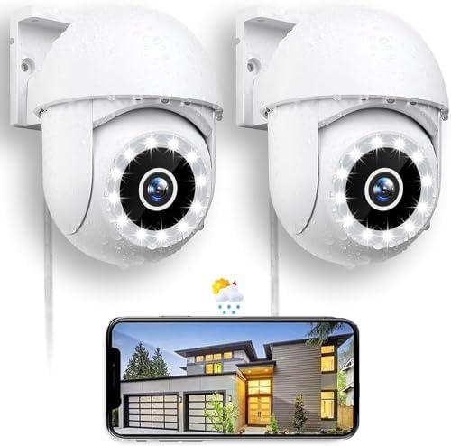 Caméra Surveillance WiFi Extérieure 2K, Camera Exterieur Mise à jour 360° avec Vision Nocturne Couleur, 2.4GHz Caméra IP avec Audio Bidirectionnel, Sirène, Détection Humaine, Compatible avec Alexa 2PC