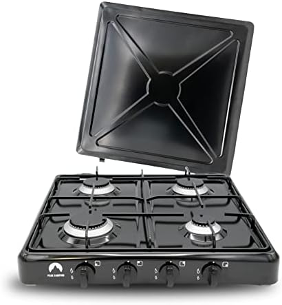 Campata Réchaud à gaz portable à 4 feux, réchaud à gaz noir, intérieur et extérieur, réchaud de camping pour gaz propane, équipement d’urgence (sans sécurité d’allumage)