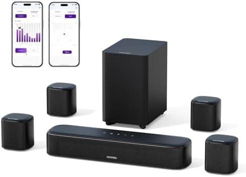 - 2 ULTIMEA 7.1 330W TV Soundbar for Home Theater, Sound Bars with Subwoofer, Virtual Surround Sound System for TV, 4 Surround Speakers, App Control, Opt/AUX/BT, Aura A40