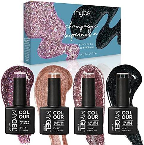 MYGEL by Mylee Ensemble de Vernis à Ongles en Gel Scintillant 4x10ml – Pédicure et Manucure UV/LED Soak-Off Nail Art pour Usage Professionnel, Salon et Maison - Longue Durée, Facile à Appliquer