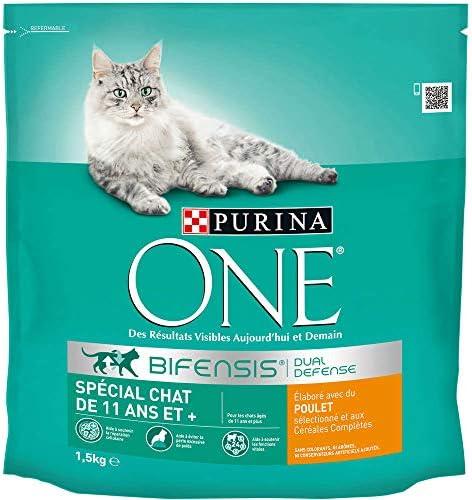 - 4 PURINA ONE Bifensis Chat de 11 Ans et Plus | Croquettes Au Poulet et aux Céréales Complètes pour Chats Seniors | Sac de 1,5kg | Lot de 6