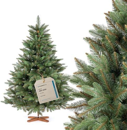 - 5 FAIRYTREES Sapin de Noël Artificiel, Nordmann Premium 150 cm, Éléments naturels moulés par Injection, Fabriqué en UE, Arbre de Noël avec Support en Bois de frêne Fait à la Main