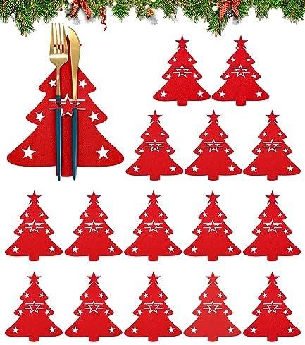 LEAZZLE 16 Pcs Portes Couverts Noel,Sac à Couverts de Noël Sac à couverts pour sapin de Noël Porte-Couverts Sapin de Noël ,Decoration de Table Noel pour Couteau Fourchette Baguettes(Rouge)