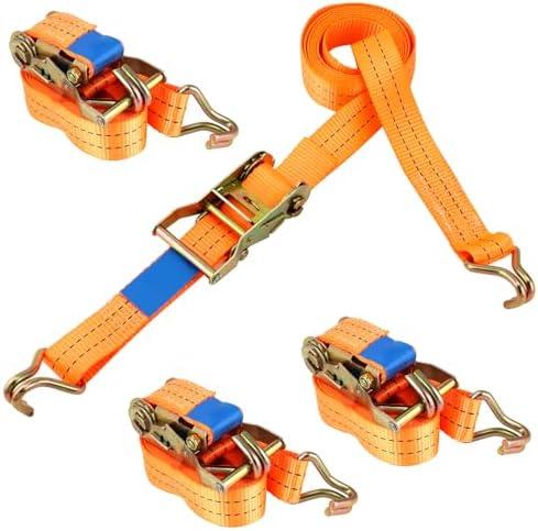 QWORK® 4 x Car Transport Lashing Straps 38 mm Width 3 m Length Tightening Straps for Car Transport 3 Tons, Orange