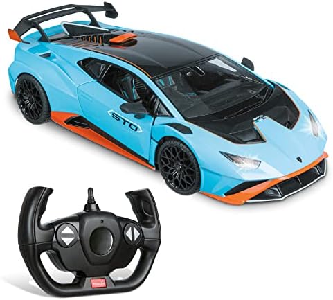 MONDO Motors, Lamborghini Huracan STO 2,4 GHz, Modèle à l’échelle 1 : 14, jusqu’à 10 km/h de Vitesse, Voiture Jouet pour Enfants 63707 Bleu Ciel