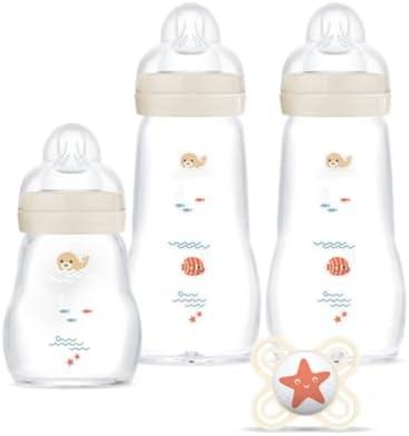 - 3 MAM Glass Bottle Set (3 Glass Bottles + 1 Dummium) – MAM Heat Resistant Glass Bottle – Glass Bottle for Infants from Birth and Silicone Dummy