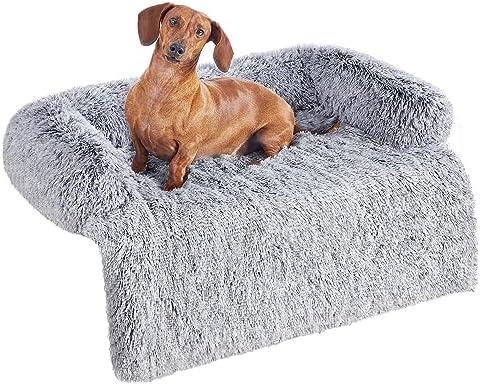 - 4 FEANDREA Panier pour Chien Orthopédique, Canapé, Lit pour Animaux, Rembourrage Moelleux, Bords Rehaussés, Housse Amovible et Lavable, 106 x 80 x 25 cm, Antidérapant, Gris Foncé PGW077G01