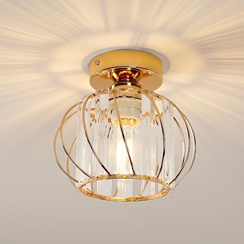 Kiwaezs Plafonnier en Cristal Moderne, Plafonnier LED E27, Mini-Lustre LED en Cristal, Semi-Encastré Lampe Plafond pour Cuisine Salle à Manger Chambre Couloir Entrée (L’or)