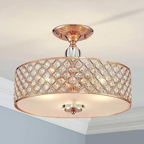 Saint Mossi Lustre en cristal, semi encastré, style moderne, idéal pour les espaces de vie, d39cm X h28cm, cadre en finition or rose
