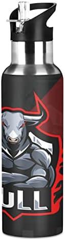 Vnurnrn Roi Taureau Dessin Animé Vache Animal Bouteille d’eau Isotherme avec Paille en Acier Inoxydable Gourde 600ML, Sans Bpa Gourdes Eau pour Enfant Sport Randonnée École Bureau