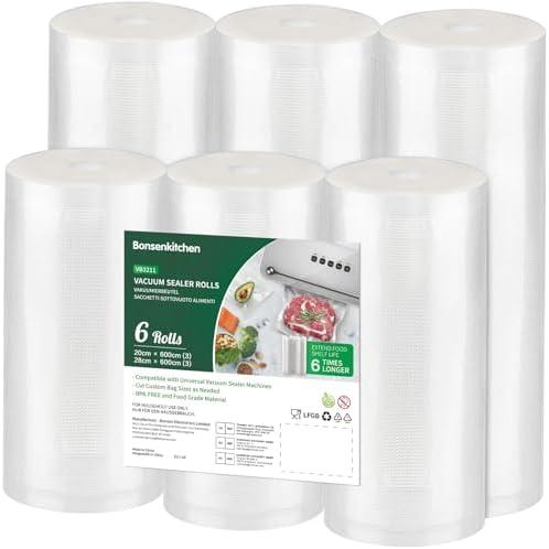 - 1 Bonsenkitchen Sacs Sous Vide Alimentaire, 3 rouleaux 28 x 600 cm + 3 rouleaux 20 x 600 cm, pour Machine Sous Vide des Aliments et la Cuisson, Sans BPA, VB3211