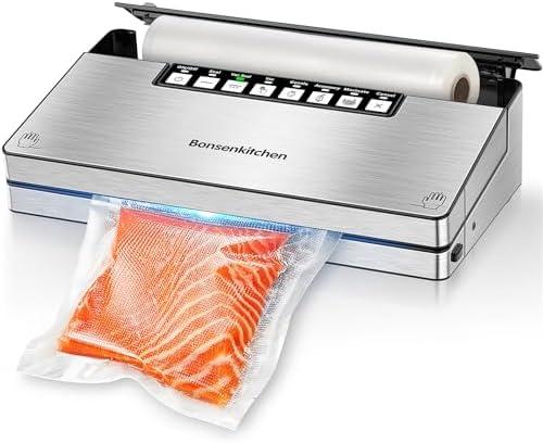 - 4 Bonsenkitchen Machine Sous Vide Alimentaire, Machine Sous Vide Professionnel en Inox avec 6 Modes Alimentaires, Coupeur Intégré et Conteneur de Sac, Avec Kit de Démarrage