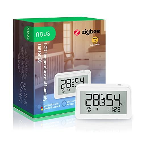 NOUS E6 Thermomètre et Hygromètre Connecté LCD ZigBee, Thermometre Interieur, Température et d’humidité Intelligent, Compatible avec Alexa, HomeKit, Tuya, Smart Life ZigBee2MQTT, Requis Hub NOUS E1/E7