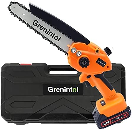 - 1 Grenintol Mini Tronçonneuse à Batterie 3.0Ah, 8 Pouces Tronçonneuse Electrique Rechargeable,24V/1000W Tronçonneuses Moteur Brushless Haute Puissance sans Fil avec 2 Batterie(6000mA)