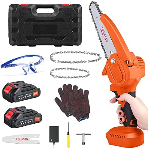 En termes de durée de vie de la batterie, cette mini tronçonneuse est alimentée par 2 batteries lithium 21V de 2,0 Ah qui offrent une longue durée d’utilisation pour vous permettre de travailler sans interruption. Pour des résultats optimaux, il est recommandé de n’installer la batterie que lorsque l’outil est prêt à être utilisé et de la retirer après son utilisation quotidienne. La mini tronçonneuse à batterie SENTASI est également livrée avec une multitude d’accessoires, notamment une tête de 4 et de 6 pouces, des chaînes, un tournevis, un chargeur, des lunettes de protection, un manuel d’utilisation et une boîte à outils. Cependant, il est important de noter que cette tronçonneuse a été conçue principalement pour un usage domestique léger et peut ne pas être adaptée aux travaux de coupe de bois plus exigeants ou à un usage professionnel.
