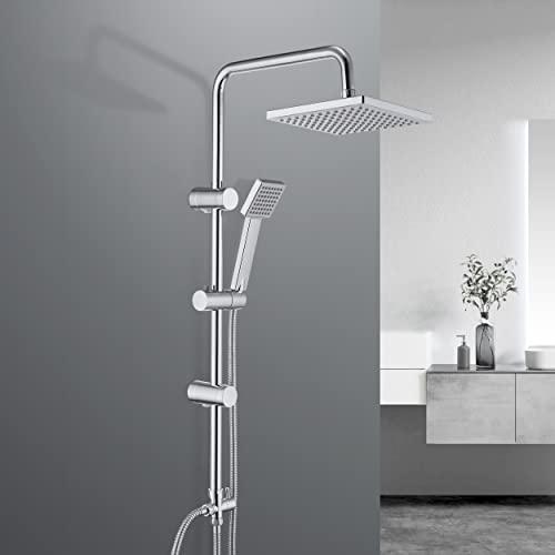 JOHO Colonne de Douche Hydromassage sans Robinetterie Fixations Réglable Murales Hauteur Colonne Douche pour Baignoire Douchette Douche Salle de Bain Pommeau de Douche(ABS 20 * 20cm)