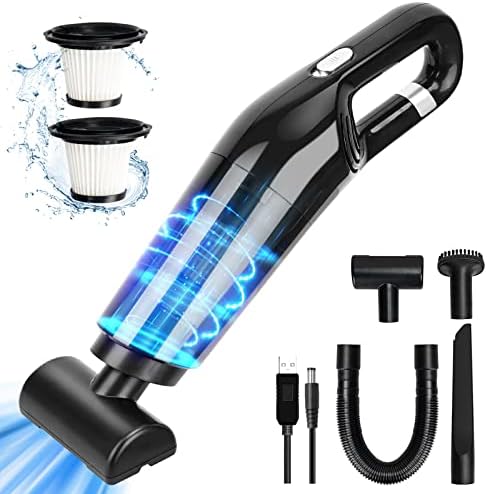 - 2 LAMA 10000 Pa Aspirateur Voiture Puissant, Mini Aspirateur à Main sans Fil Rechargeable avec Lavable Filtre HEPA, USB Aspirateur de Table pour Maison Voiture, Bureau, Cuisine, Noir